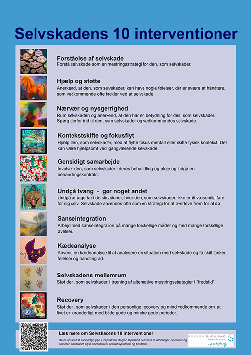 Selvskadens 10 interventioner udbredes i Psykiatrien Region Sjælland og kan også anvendes på de somatiske sygehuse og i de kommunale tilbud til patienter og borgere med selvskadende adfærd.